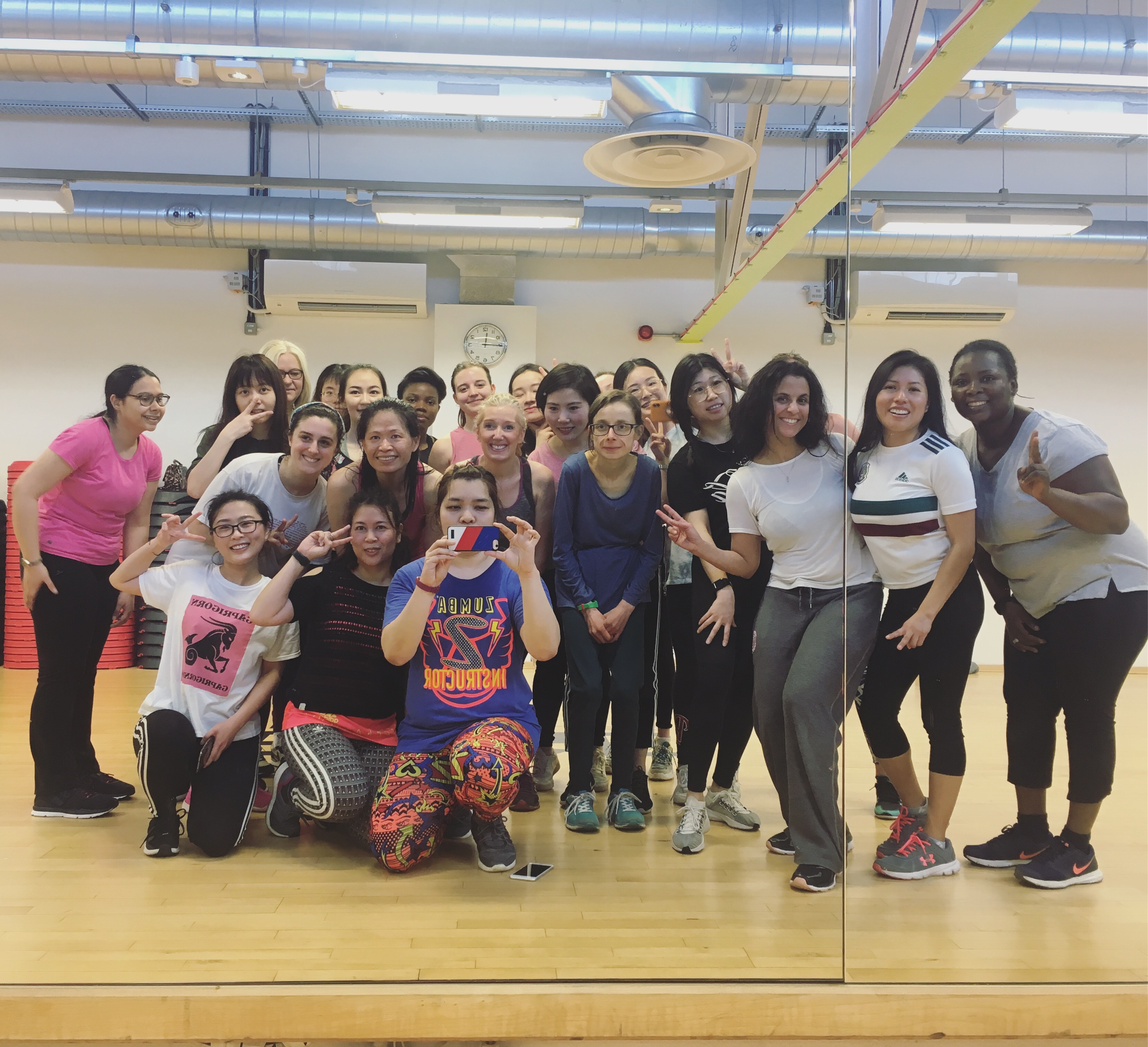 หลังจากวันนั้นที่พ่อบอกแบบนั้น ส้มโอก็พยายามหาความสุขระหว่างเรียนค่ะ และส้มโอก็เลยหาความสุขจากการเต้น Zumba ค่ะ ตอนอยู่เมืองไทยส้มโอได้เต้น Zumba กับครูหนุ่ม Zumba ครูเซเลปที่ The Studio คือมันส์มาก สนุกมาก มีแต่ความ positive และมันมีความสุขที่สุดเลยตอนอยู่ในคลาสครูหนุ่ม แต่พอไปเต้นในยิมที่ Leeds มันก็พอสนุก แต่ก็คือไม่ค่อยฟินเท่าคลาสครู (แหม จะไปเทียบได้ยังไงนะคะ) ส้มโอเลยตัดสินใจ สมัครเป็นครูสอน Zumba ไปเลย เอาสิ่งที่เรียนจากคลาสครูหนุ่มมาสอน เพื่อไปประกาศศักดาให้ชาว ฝ. และชาวต่างชาติได้เห็นว่า Zumba คนไทยสนุกกว่ามาก ๆ ก็สู้รบในการสมัครและการให้เค้ายอมรับเราไปสอนอยู่นานมาก ๆ เพราะก็เค้าก็จะมี culture และระบบของเค้าค่ะ จนในที่สุดก็ได้เป็น Zumba instructor ที่ The Edge ช่วงแรก ๆ ก็จะไม่มีคนมาเต้นเท่าไร เพราะเค้าไม่รู้จักเรา และก็เป็นเอเชียคนแรกด้วยค่ะที่ได้ไปสอน ตอนแรกสอนแบบไม่ได้ตังค์เลยค่ะ สอนแบบ 1 เพลงในคลาสของครู Zumba คนอื่นอยู่ประมาณปีนึง ถึงจะมีคลาสเป็นของตัวเองค่ะ สอน Zumba คือสนุกมาก ๆ แล้วคลาสส้มโอเป็นคลาสที่เอาความกรี๊ดกร๊าด ความ entertain ไปสู่ชาว ฝ. แรก ๆ ฝ. ก็งง ๆ นิดนึง แต่สุดท้ายเค้าก็ชอบกัน และครูคลาส Zumba อื่น ๆ ก็พากันกรี๊ดกร๊าด และก็ entertain มากขึ้นตามค่ะ