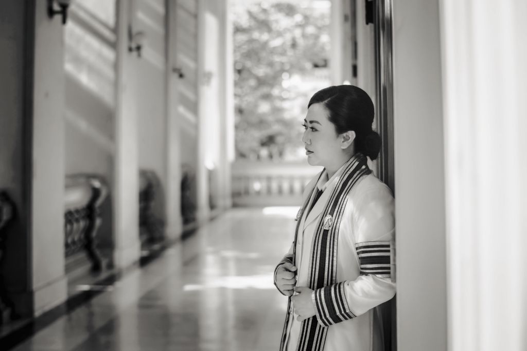 ส่วนช่วงท้ายขอเรียกว่า “การจบอย่างเป็นทางการ” ความรู้สึกตอนนั้นเราจะเห็นมันเป็นรูปธรรมแล้วเพราะมีกระบวนการมากมายที่สุดท้ายเรามักเรียกติดปากว่า “กระดาษแผ่นเดียว” และเอกสารพวกนั้นเอง ที่ทำให้เราถึงกับน้ำตาซึมออกมาเมื่อได้เห็นมันในมือ ในคราบน้ำตานั้นเต็มไปด้วยความรู้สึกมากมาย ภาพในหัววนขึ้นมาเหมือนเป็นหนังไตรภาคที่รวมฉากสำคัญไว้ แต่ละฉากก็สารพัดอารมณ์ ณ ตอนนั้นและเราฝ่ามันมาสำเร็จแล้ว เพราะกระดาษใบเดียวนั่นล่ะที่มันเป็นเหมือนสัญลักษณ์ที่ชัดเจนที่สุดที่บ่งบอกว่าเราผ่านอะไรมา ระดับความดีใจนี่บอกเลยว่าถ้าเรามีสเกลถึง 100 ครอบครัวและเพื่อนฝูงเรานี่คือ 10,000 (หัวเราะ) คนอื่นอาจฉลองจุดพลุ สำหรับผู้เขียนนี่คือจุดบั้งไฟล้านค่ะ (หัวเราะดัง)